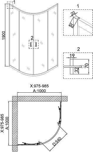 - Форма: четверть круга.
