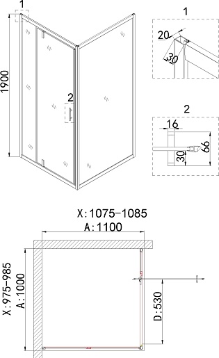 Niagara Душевой уголок Nova 100x110 NG-43-10AG-A110G