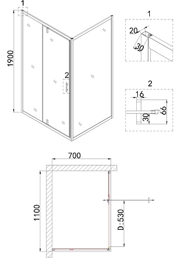 - Стекло: закаленное прозрачное, толщиной 6 мм.