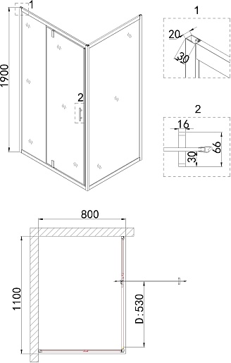 - Стекло: закаленное прозрачное, толщиной 6 мм.