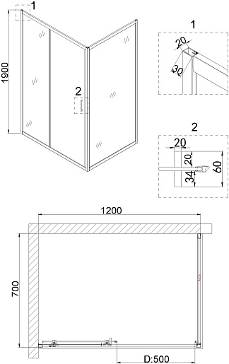 - Стекло: закаленное прозрачное, толщиной 6 мм.