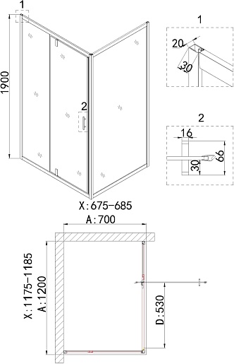 - Стекло: закаленное прозрачное, толщиной 6 мм.