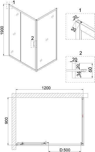 - Стекло: закаленное прозрачное, толщиной 6 мм.