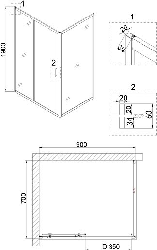 - Стекло: закаленное прозрачное, толщиной 6 мм.