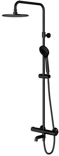 - смеситель для ванны термостатический; - ограничитель горячей воды на 38°C; - система охлаждения корпуса смесителя позволяет избежать ожога при случайном контакте; - верхний душ латунный (WG125BL), размер: ø25 см, отдаленность от стены: 42 см; - душевая лейка (YOSEMITE-RBL) с 5-ю функциями; - режимы струи: массаж, туман, аэрированный дождь, аэрированный массаж, аэрированный туман; - душевой шланг в оболочке ПВХ (028BL), длина: 150 см; - переключатель струи верхний душ/ручной душ, встроенный в смеситель; - регулируемая высота, минимальная/максимальная высота системы: 93 см/156 см.