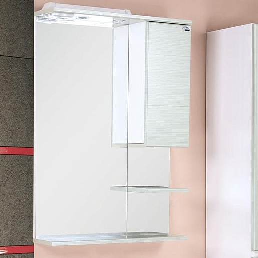 - Влагостойкое зеркальное полотно, две открытые полочки.