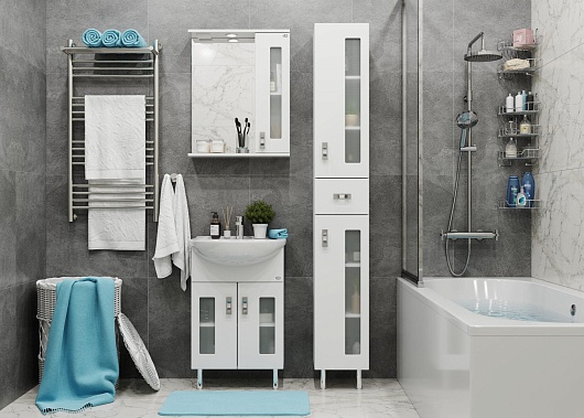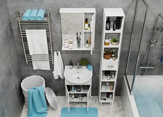 В комплекте: тумба, раковина, зеркальный шкаф, ножка (3 шт.).