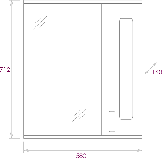 - Размеры (ШxГхВ): 580x160x712 мм.