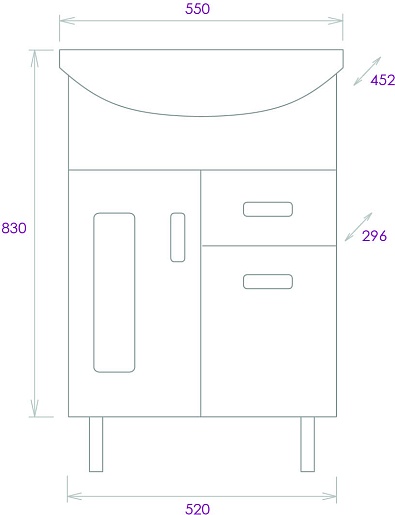 Напольная тумба с раковиной Onika Кристалл 55.182 - арт. 105551 / UM-ERI55/1.