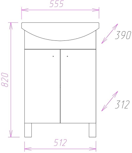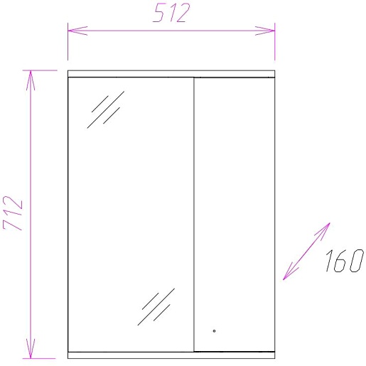 - Размеры (ШxГxВ): 512х160х712 мм.