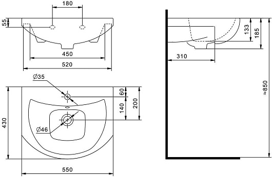 Напольная тумба с раковиной Onika Лига 55.11 - арт. 105554 / 1WH501702.
