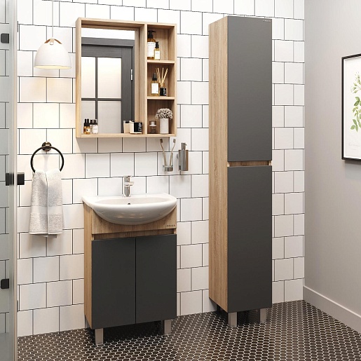 Тумба под раковину Милтон 55 серая/дуб сонома