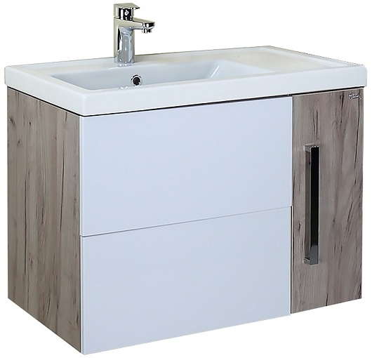 Комплектация: подвесная тумба с двумя выдвижными фасадами и дверкой, умывальник ФОСТЕР 80 крыло справа (Kirovit).