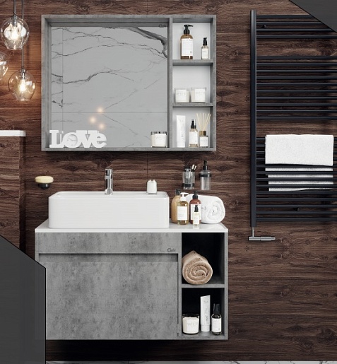 Зеркальный шкаф Нейт 90 бетон чикаго