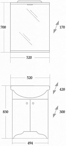 Размеры ШxГхВ: 520x170х700 мм.