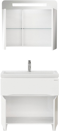 В комплекте: тумба, раковина, зеркальный шкаф, ножка (4 шт.), крепеж.