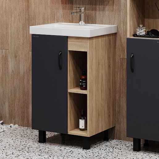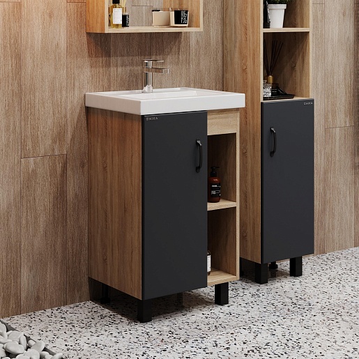 Тумба под раковину Тимбер 50 L серая матовая/дуб сонома