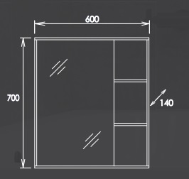 Соотношение сторон комплекта составляет 60х40,5х83 сантиметра, при этом ширина тумбы достигает 56,5 сантиметра, а раковины – 60,8 см. Шкафчик включает в себя три отдельные полочки и одну большую напротив зеркального полотна. В тумбе предусмотрено три отделения: две полки для наиболее часто используемых вещей и распашной фасад с доводчиками, препятствующими шумному захлопыванию дверцы. Покрытие фасада – очень приятный на ощупь матовый Soft-touch.Зеркало «Тимбер 60.00У» — арт. 206070