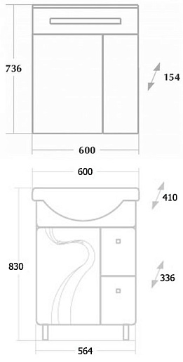 Тумба с раковиной «Валлетта 60.14» - арт. 106057, U-UM-CE 60/1