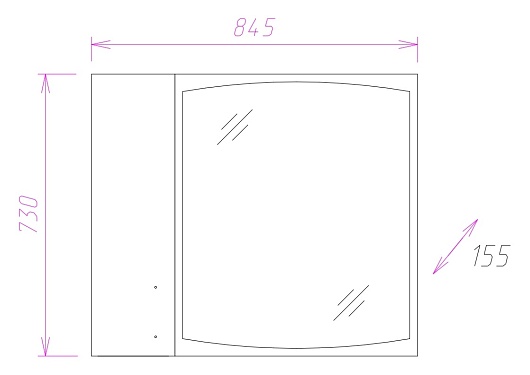 Комплектация: зеркальный шкаф для ванной с влагостойким зеркальным полотном. Шкаф с распашной дверцей и внутренними полками. Ориентация левосторонняя.