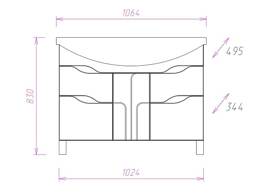 Комплектация: тумба с выдвижными фасадами, дверками, умывальник Стиль-105 (Кirovit).