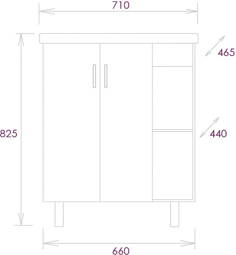 - 2 дверцы, 2 открытые полки.