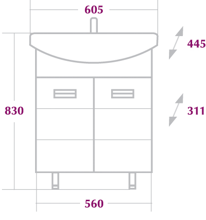 Комплектация: Тумба с раковиной, регулируемые по высоте ножки.