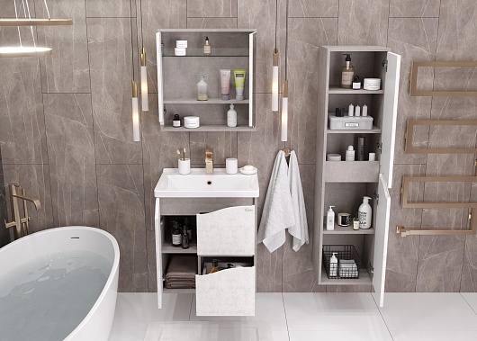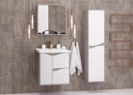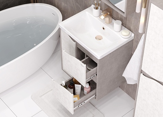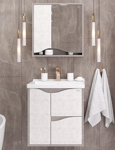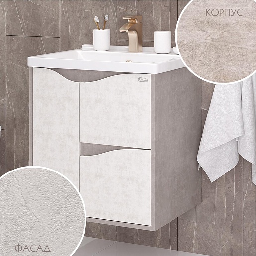 Тумба под раковину Брендон 60.13 камень светлый/бетон крем