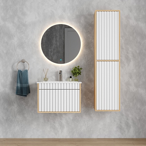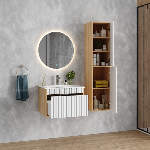 Тумба под раковину Дайлер 60 подвесная белая/дуб сонома