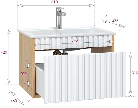Подвесная тумба с раковиной Onika Дайлер 60 - арт. 106150 / CDB00018580.