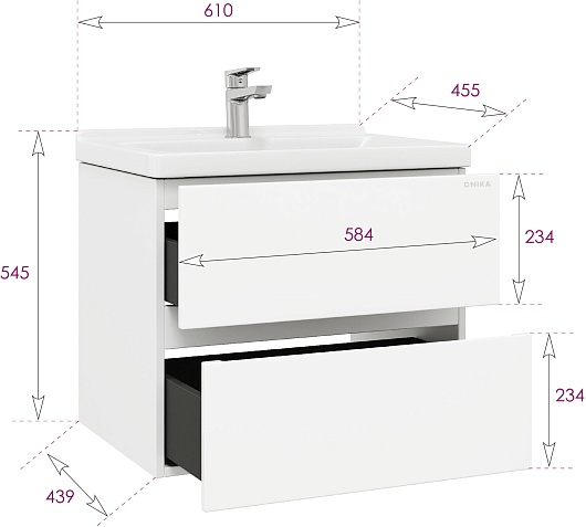 Onika Тумба с раковиной Эвада 60 подвесная белая