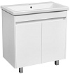Комплектация: две распашные дверцы, хромированая фурнитура и 3 ножки, передние ножки, задняя ножка 1 штука из ПВХ, фасад из MDF, корпус — ЛДСП, фаянсовая раковина "Санита Манго 40". Благодаря небольшим габаритам подойдет для маленьких ванных комнат.