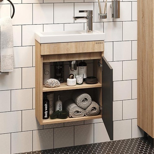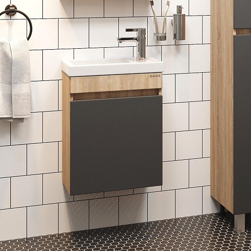 Onika Тумба с раковиной Милтон 45 R подвесная серая/дуб сонома