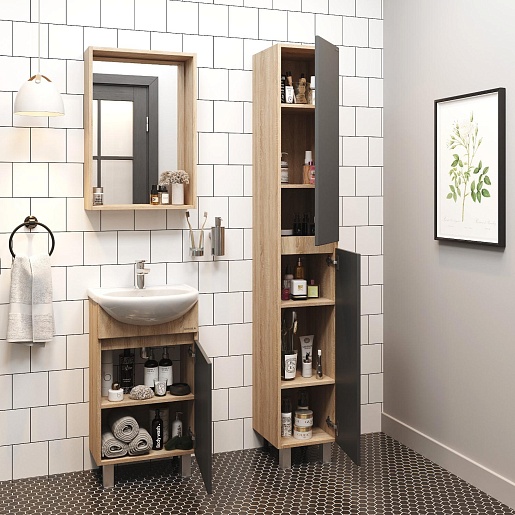 Тумба под раковину Милтон 45 R серая/дуб сонома