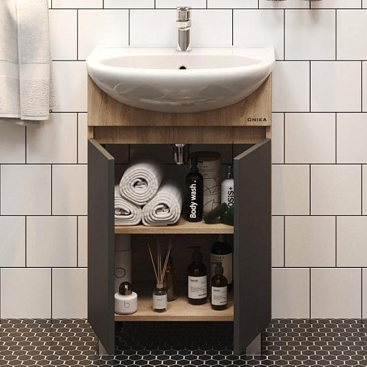 Onika Тумба с раковиной Милтон 60 серая/дуб сонома