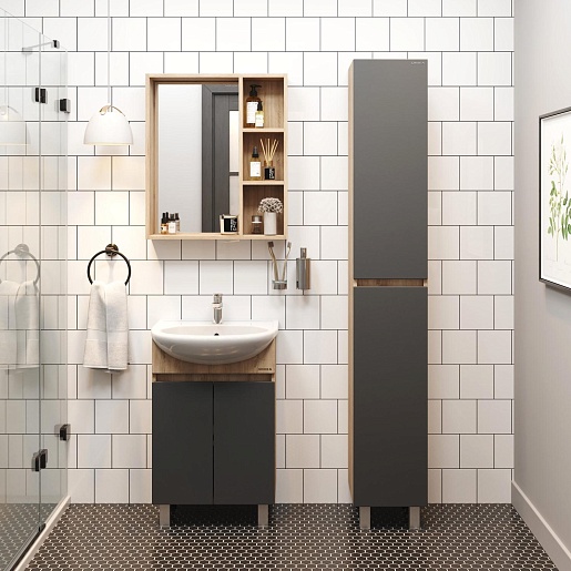 Тумба под раковину Милтон 60 серая/дуб сонома