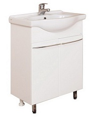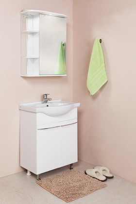 Комплектация: отделение с двумя распашными дверцами, хромированая фурнитура, фасад из MDF, корпус — ЛДСП, фаянсовая раковина "Сантек Селигер 60".