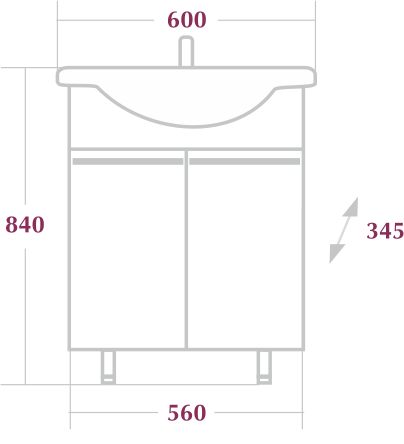 Размеры ШxГxВ: 600x345x840 мм.