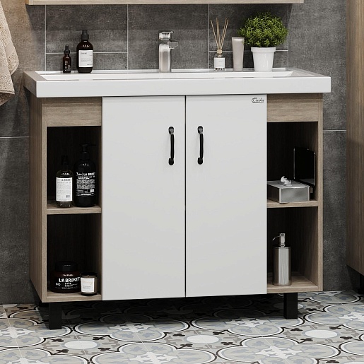 Тумба под раковину Тимбер 100.10 белая/дуб сонома