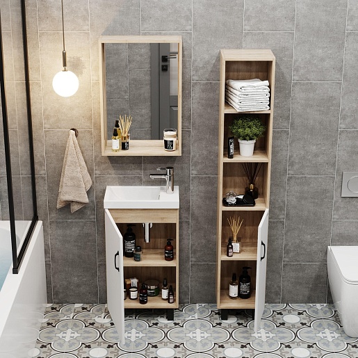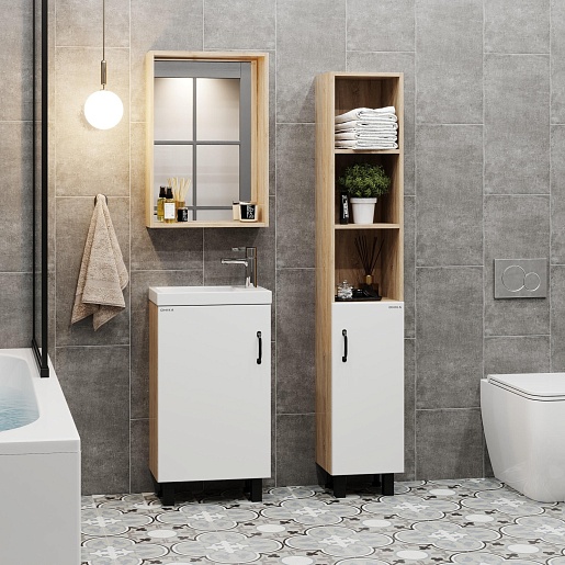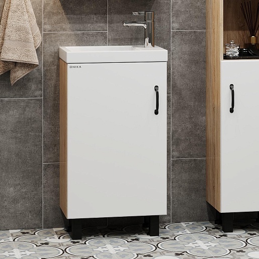 Onika Тумба с раковиной Тимбер 45 L белая матовая/дуб сонома