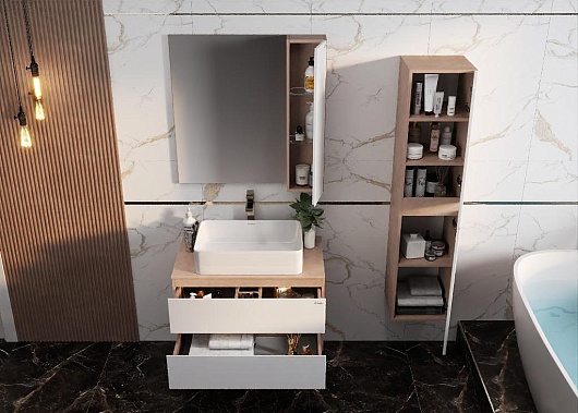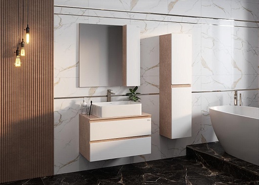 Onika Зеркальный шкаф Алеста 80.00 R камень светлый/белый