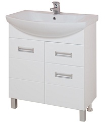 Комплектация: влагостойкое зеркальное полотно с подсветкой, выключатель, розетка. Справа — закрытый шкафчик с распашной дверцей.