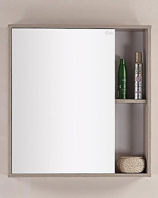 Комплектация: зеркальный шкаф для ванной с влагостойким зеркальным полотном. Шкаф с распашной дверцей и открытыми полками. Ориентация универсальная.