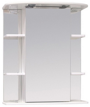 Комплектация: влагостойкая, зеркальная, распашная дверца, шесть открытых полочек из МДФ, корпус из ЛДСП. Петли слева.