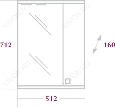 Комплектация: влагостойкое зеркальное полотно, шкафчик слева. Встроенная подсветка с розеткой и выключателем, полочка.