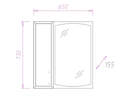 Комплектация: зеркальный шкаф для ванной с влагостойким зеркальным полотном. Шкаф с распашной дверцей и внутренними полками. Ориентация левосторонняя.
