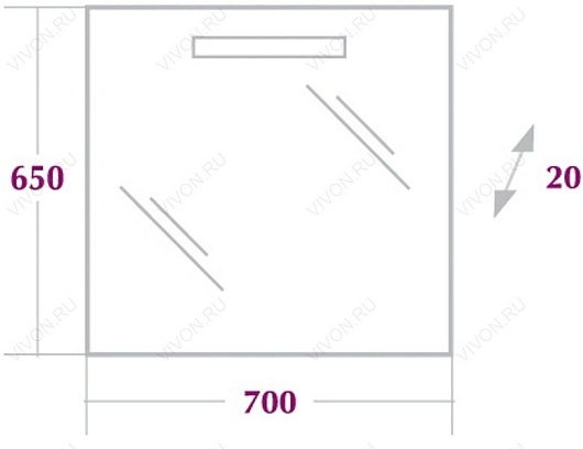 Комплектация: влагостойкое зеркальное полотно со стеклянной полочкой. Встроенная подсветка с розеткой и выключателем.