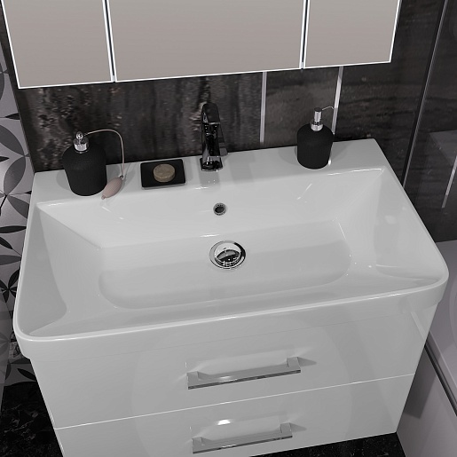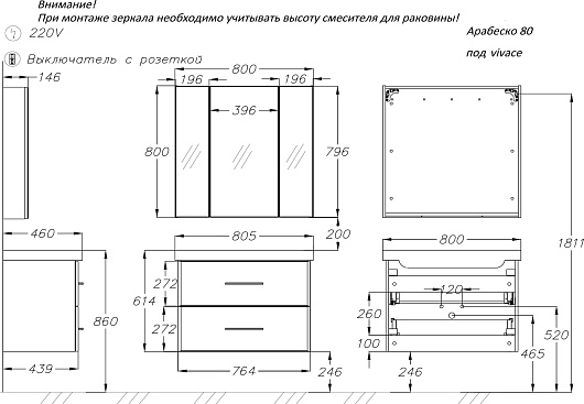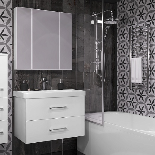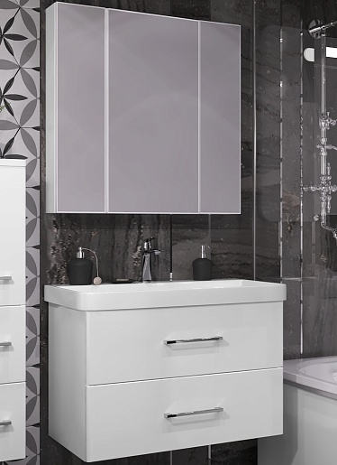 Комплектация: тумба, раковина, зеркальный шкаф.