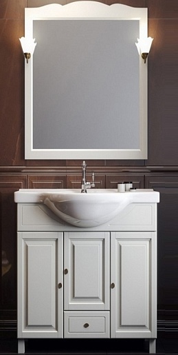 Описание: влагостойкое зеркальное полотно в раме из массива дерево, два классических светильника (Рустика "Изабель").