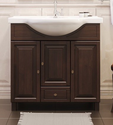 Описание: тумба с двумя распашными дверцами выполнена из массива бука. В комплект входит керамическая раковина "Дрея 95" .